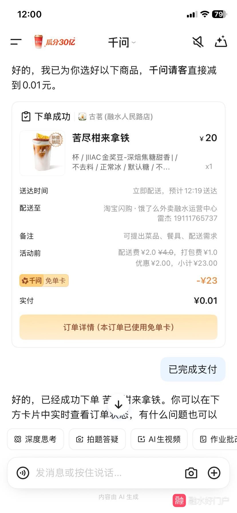 哈喽,家人们,淘宝闪购又给大伙大福利了淘宝闪购联手千问做活动,凡事通过淘宝闪购下载千问app的,就可以免费获得25元的免单资格哦每个人都有机会,是百分百免单哦赶紧扫码薅羊毛吧