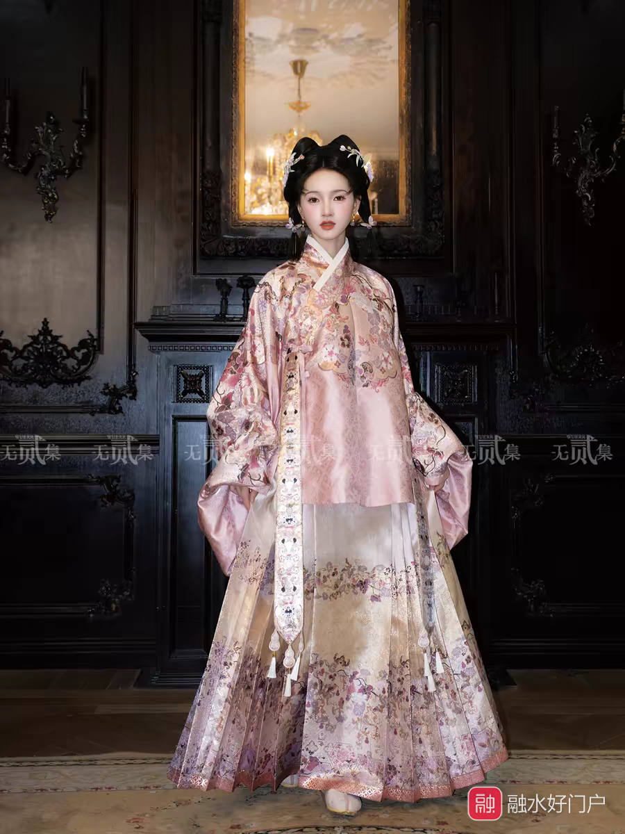 这是明代时期的汉服“对穿交”,  搭配马面裙。